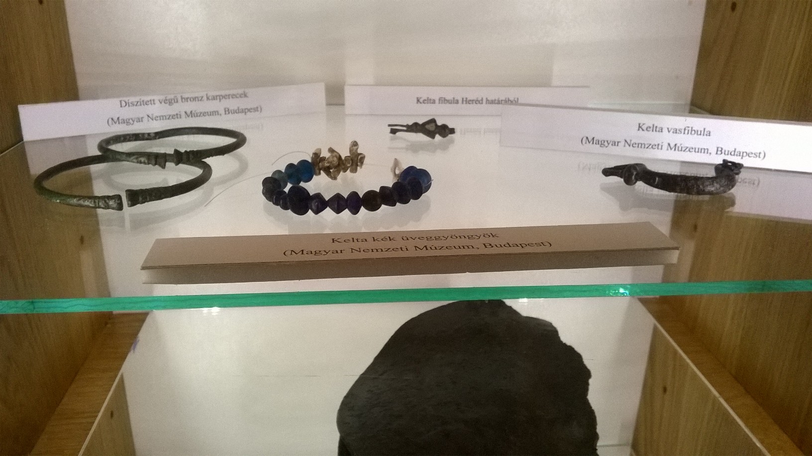 Az álló vitrinben a bronzkor végét, a vaskor elejét elevenítettük fel a kerámiák segítségével. A vaskor kapcsán igyekeztünk kiemelni Posta Béla munkásságát Hatvan−Rendezőpályaudvari ásatásáról. Kifejezetten említésre méltó a Hatvan-Boldogi kelta kard, melyről fénykép is szerepel a kiállításban.
